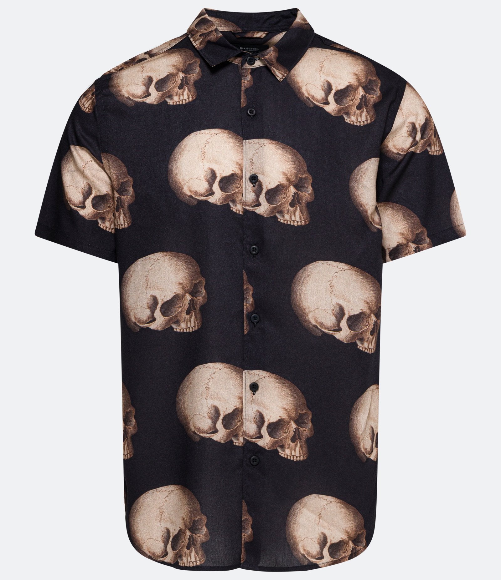 Camisa de viscose de ajuste regular com estampa de caveira preta