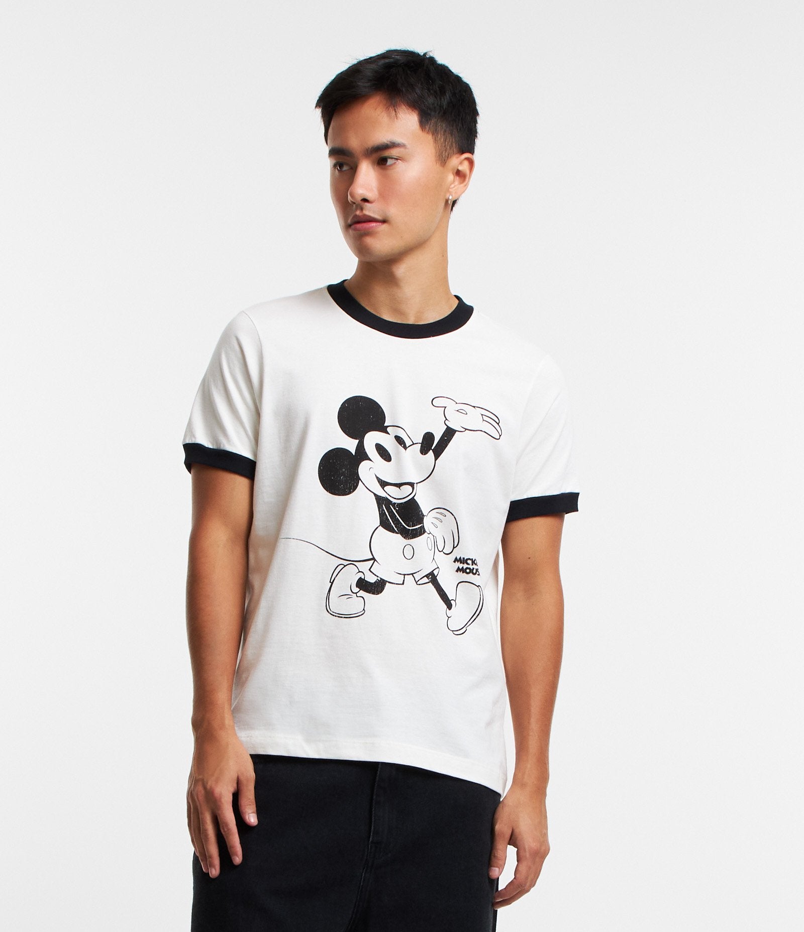 Camiseta Vintage Mickey Print Baby em algodão branco