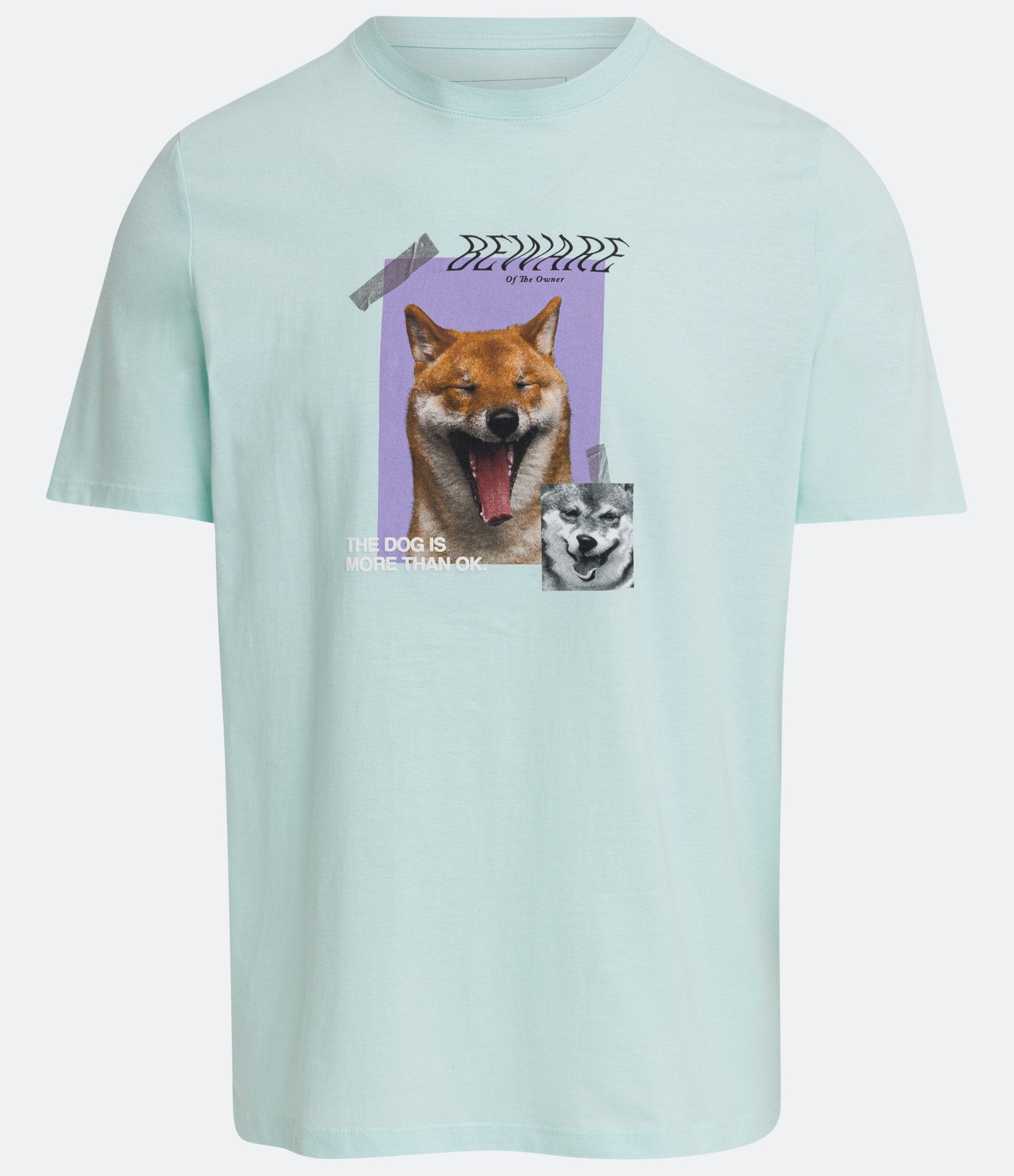Camiseta de algodão azul com estampa do cão Shiba Beware