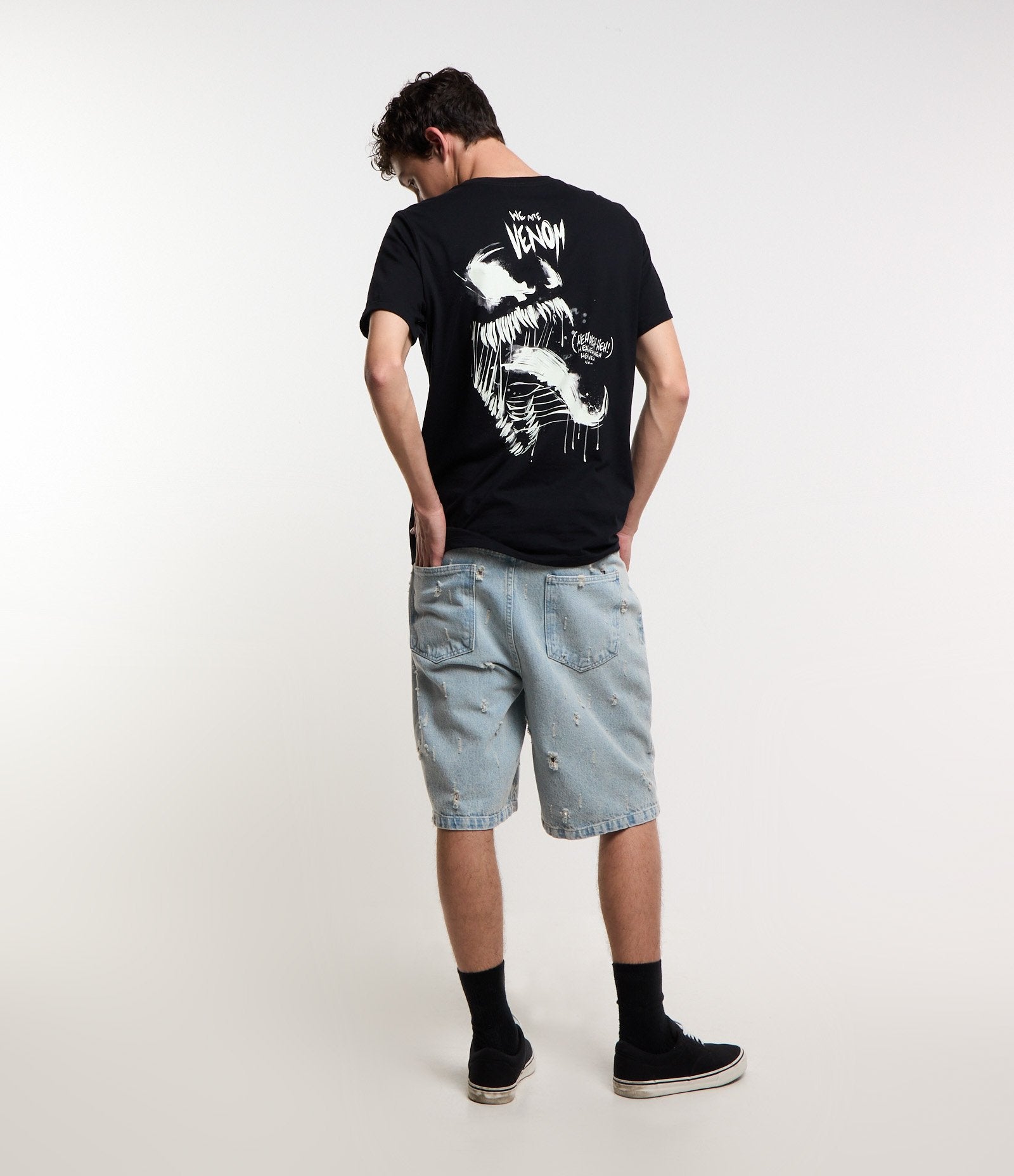 Camiseta de algodão de ajuste regular com estampa do Venom em preto