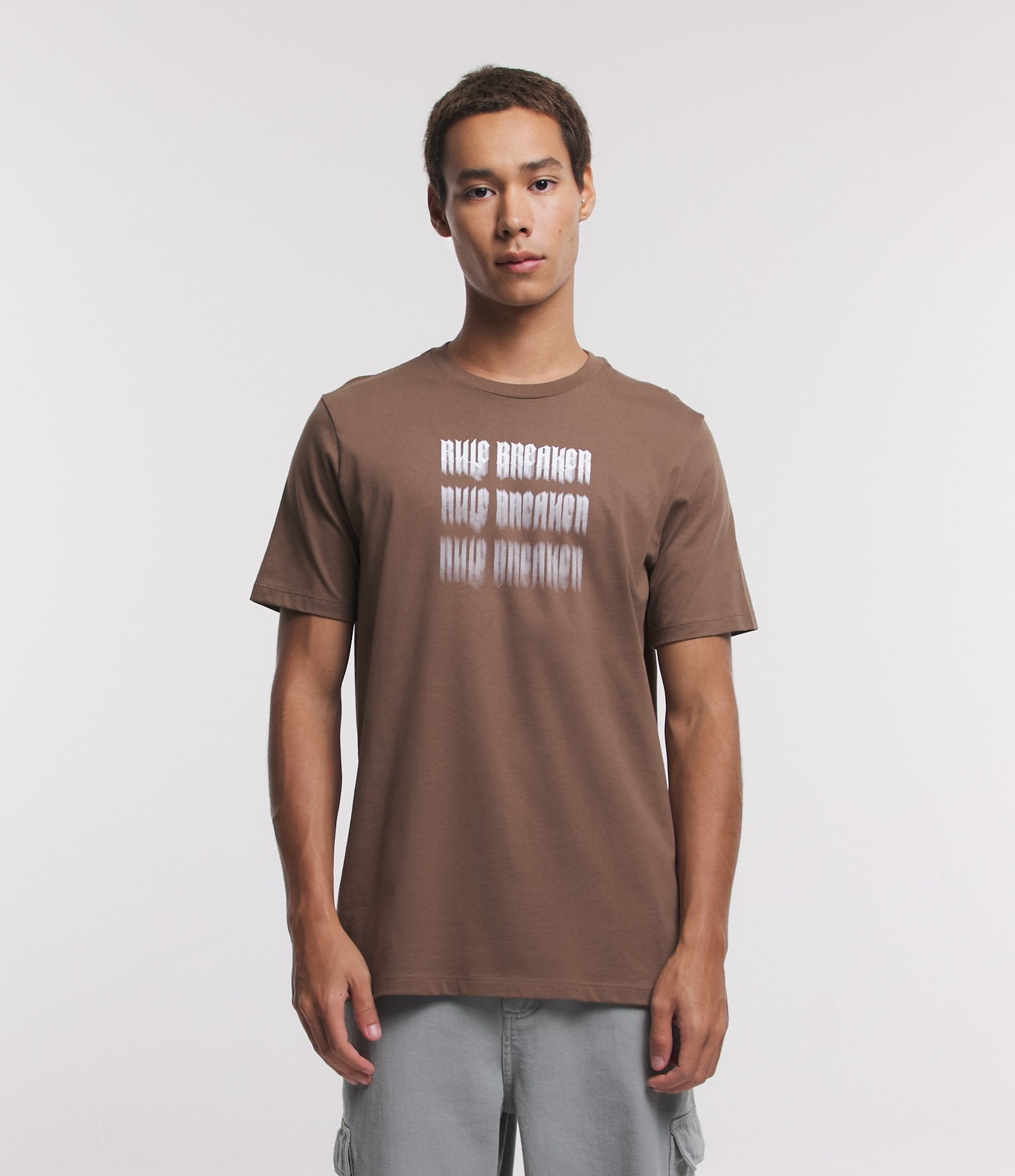 Camiseta de algodão de ajuste regular com a inscrição "Rule Breaker" em marrom