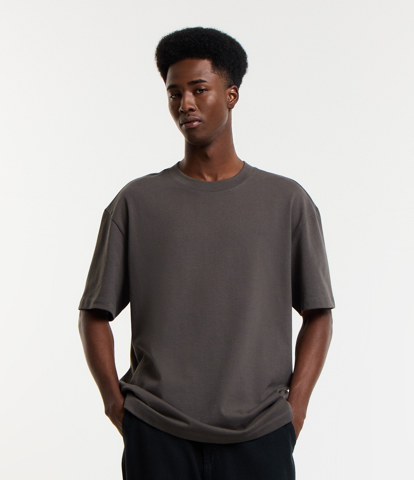 Camiseta cinza de ajuste descontraído e peso pesado em tecido de meia malha