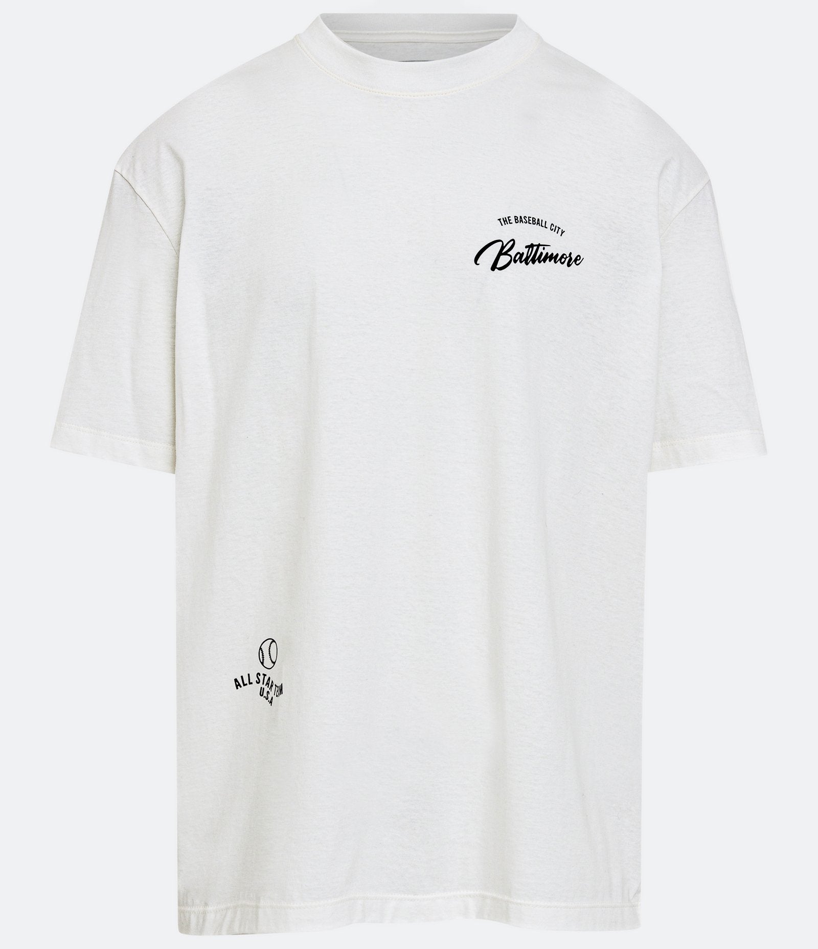 Camiseta Relaxed Fit Snow White com estampa de beisebol de Baltimore