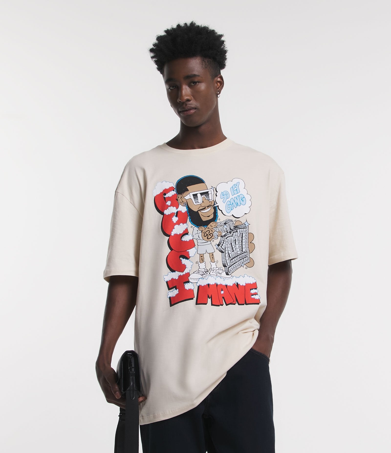 Camiseta relaxada em meia malha com estampa Gucci Mane So Icy Gang em Tea Rose