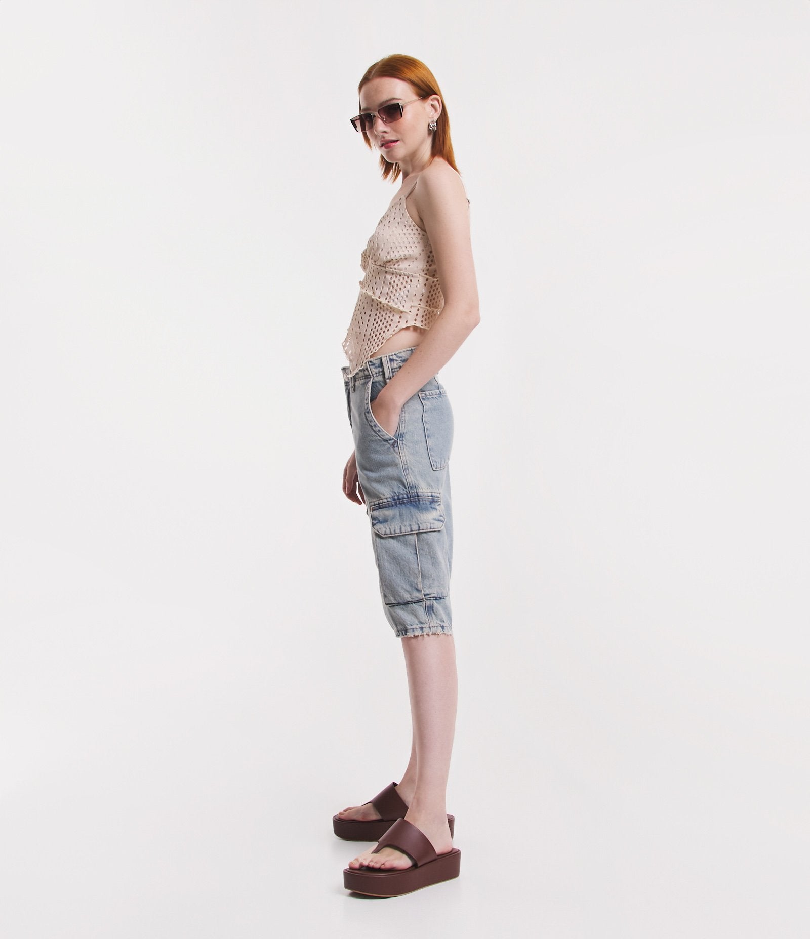 Bermuda Denim Cargo Pocket com detalhes em azul da Renner - Experimente a combinação perfeita de conforto, qualidade e estilo em cada peça.