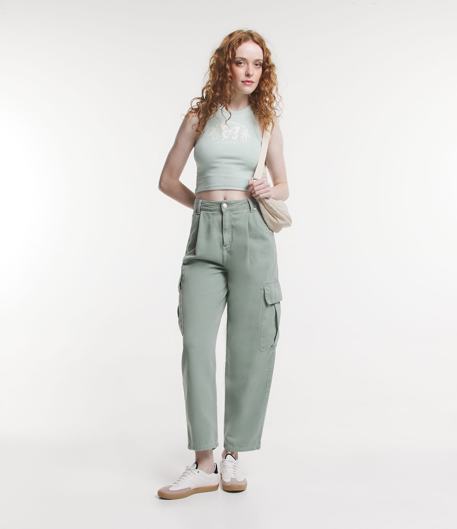 Calça Cargo Balloon em sarja verde da Renner - Experimente o conforto incomparável, a qualidade excepcional e o estilo sem esforço a cada uso.