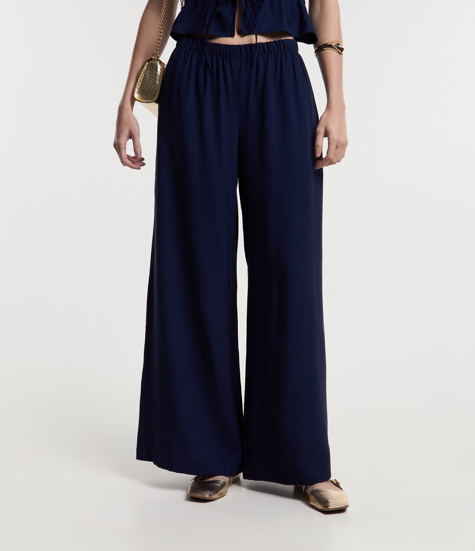 Calça de viscose de alfaiataria fluida com cós elástico em azul da Renner - Experimente a combinação perfeita de conforto, qualidade e estilo em cada peça.