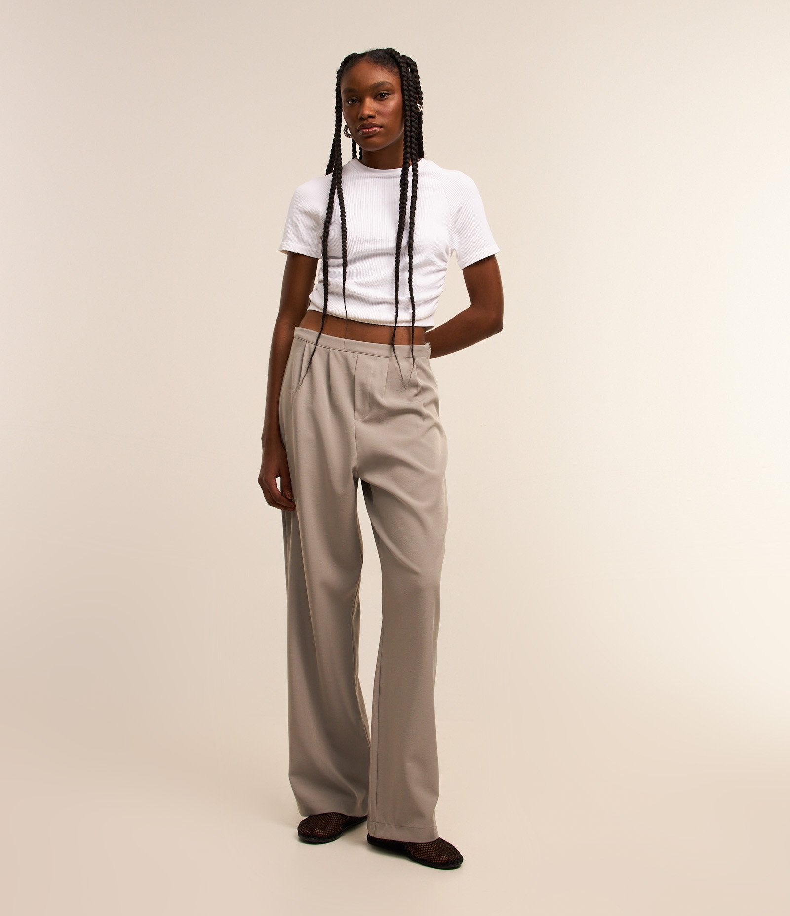 Calça de alfaiataria de perna reta com cós fino e pregas em cinza da Renner - Experimente a combinação perfeita de conforto, qualidade e estilo em cada peça.