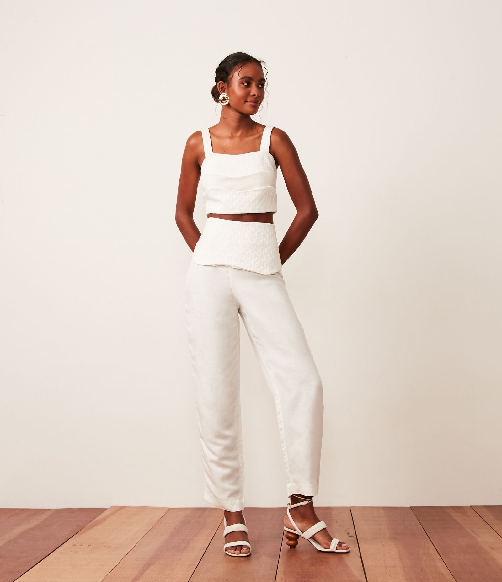 Calça reta de linho com cós branco exclusivo da Renner - Experimente o conforto, a qualidade e o estilo em cada peça.