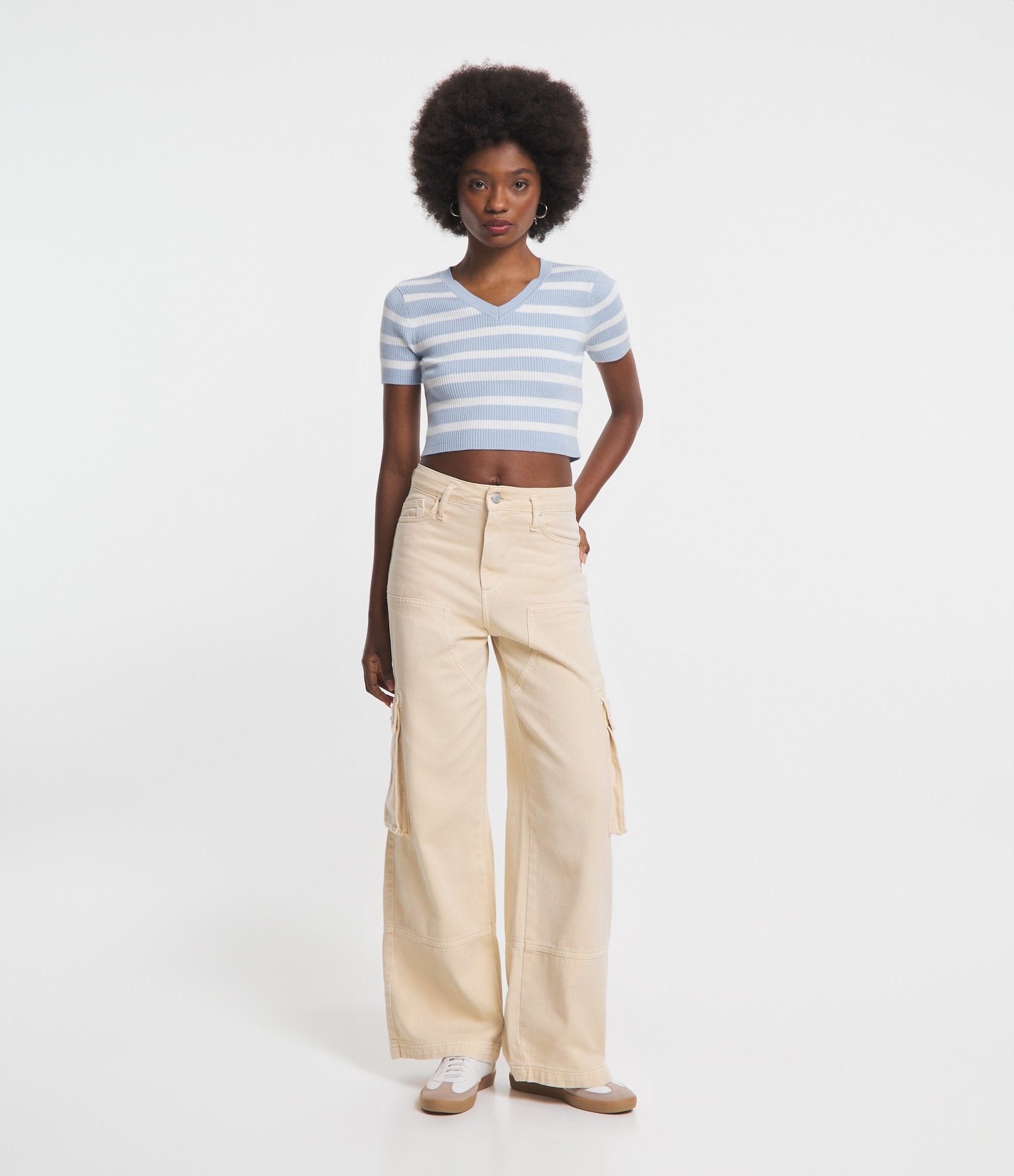 Calça de sarja de perna reta com bolsos Cargo e Carpenter em bege claro