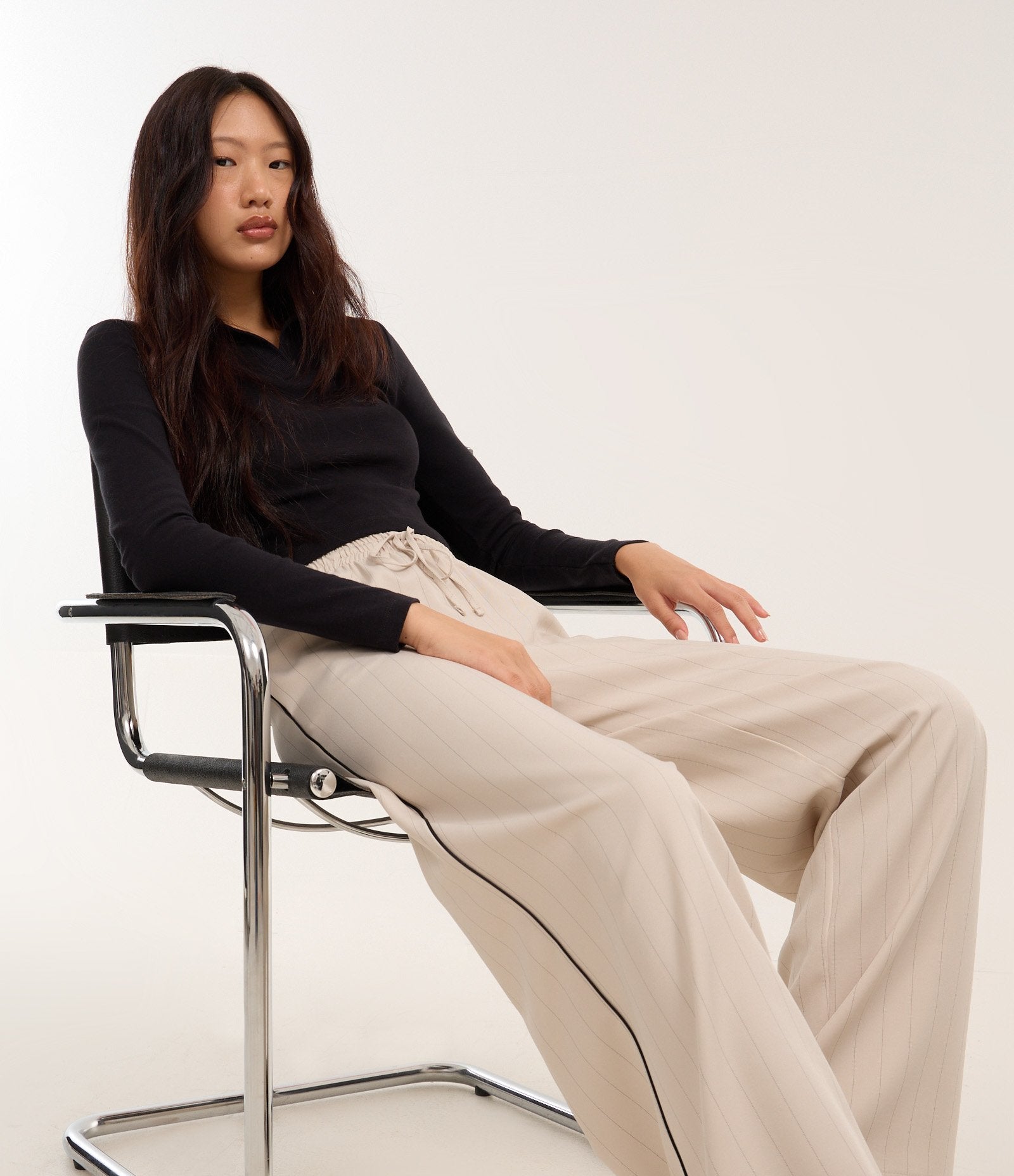 Tailored Pinstripe Straight-Leg Trousers with Beige Side Contrast by Renner - Experimente o conforto incomparável, a qualidade excepcional e o estilo atemporal em cada peça.