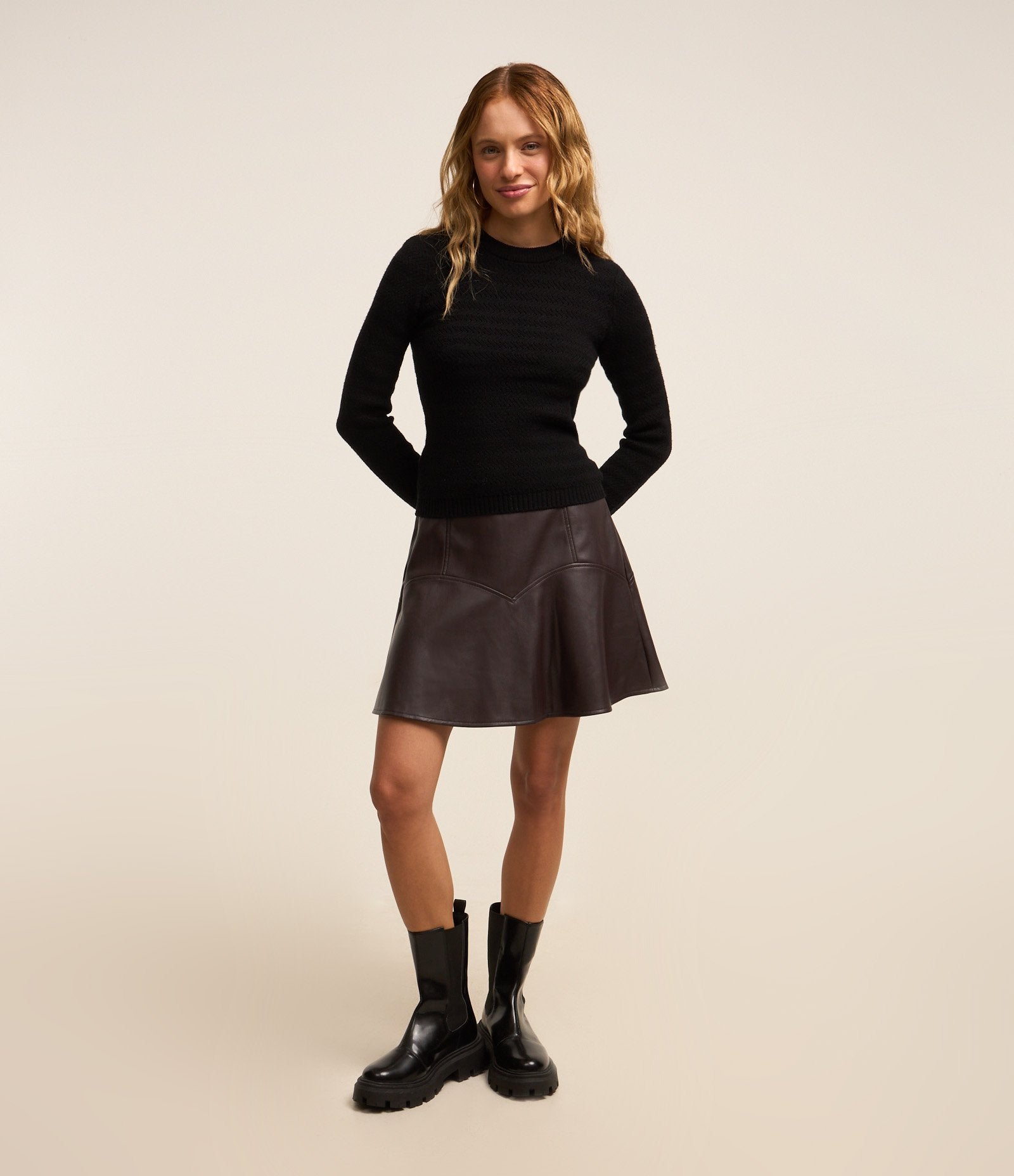 Saia curta de PU marrom com painéis alargados da Renner - Experimente a combinação perfeita de conforto, qualidade e estilo em cada peça.