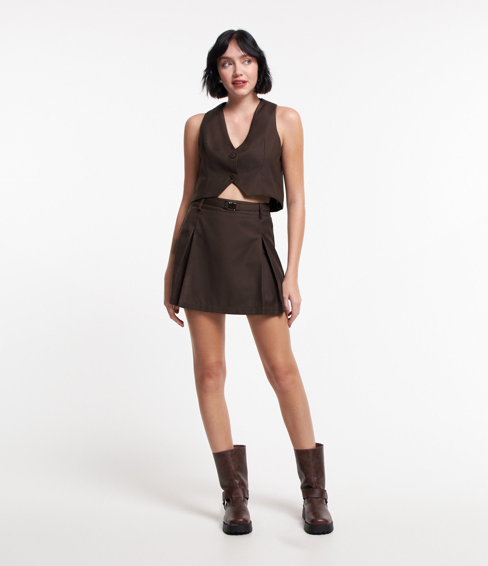 Saia de alfaiataria plissada com cinto marrom da Renner - Experimente a combinação perfeita de conforto, qualidade e estilo em cada peça.