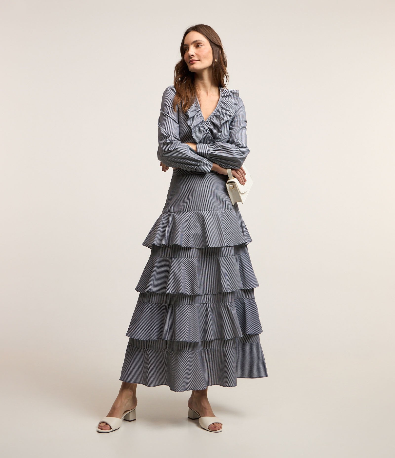 Saia longa de tricoline cinza em camadas da Renner - Experimente o conforto incomparável, a qualidade excepcional e o estilo atemporal em cada peça.