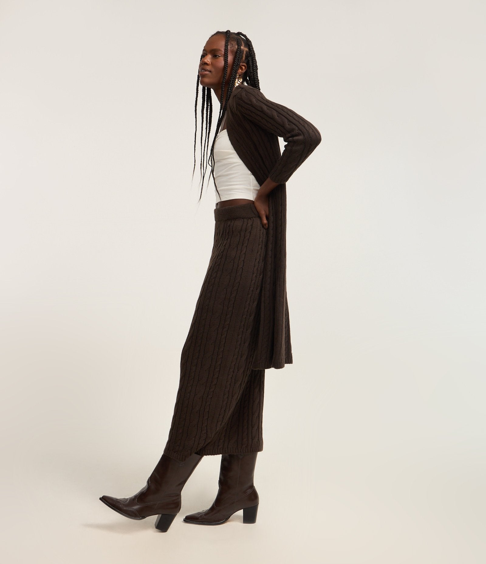 Saia reta alongada de malha com mix de pontos marrom da Renner - Experimente o conforto, a qualidade e o estilo em cada peça.