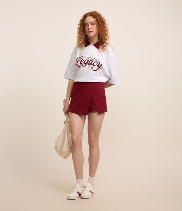 Saia curta em malha Roma com frente sobreposta em vermelho
