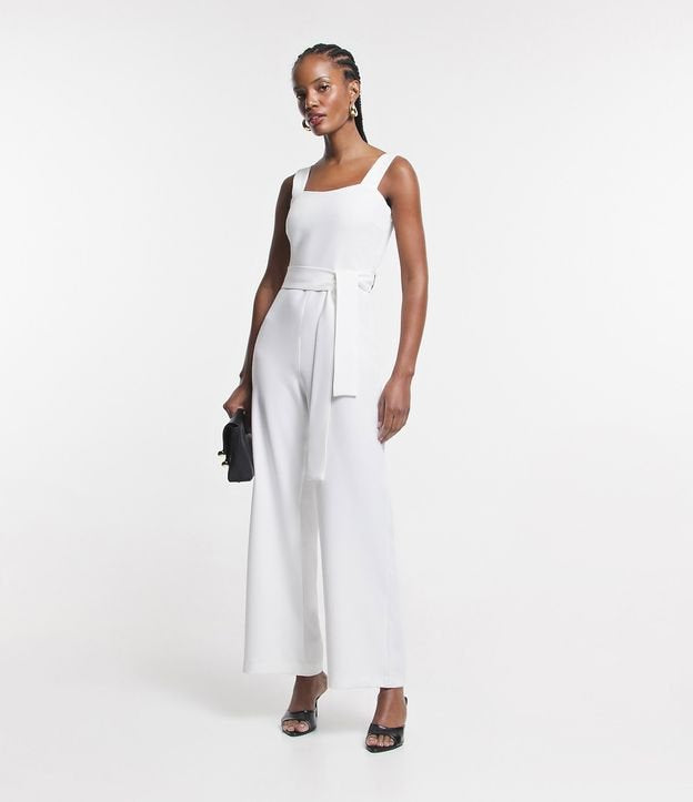 Macacão de crepe com alças e cinto de tecido em off-white da Renner - Experimente o conforto, a qualidade e o estilo em cada peça.