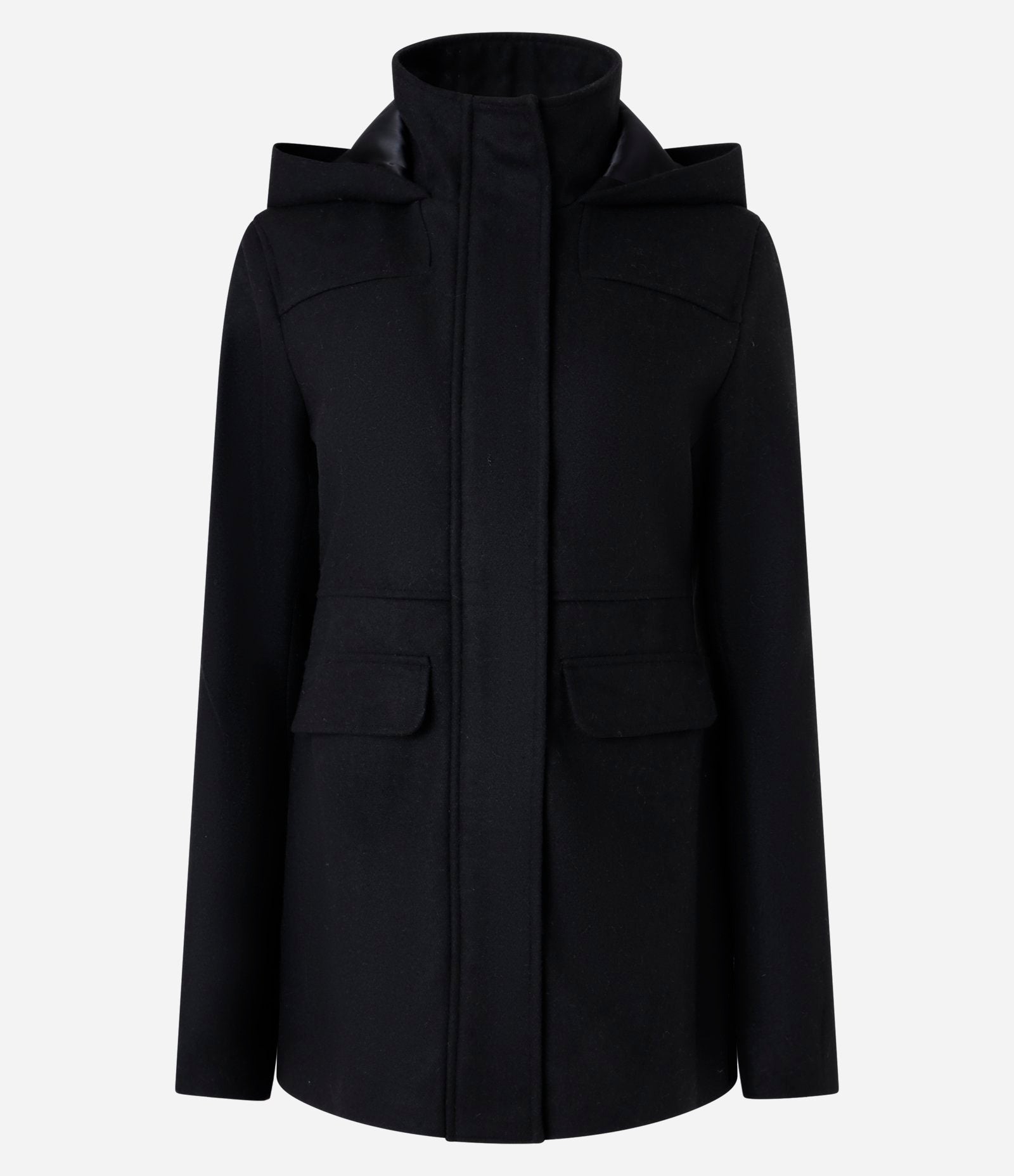 Jaqueta Longa de Poliveludo com Capuz e Bolsos na Cor Preta