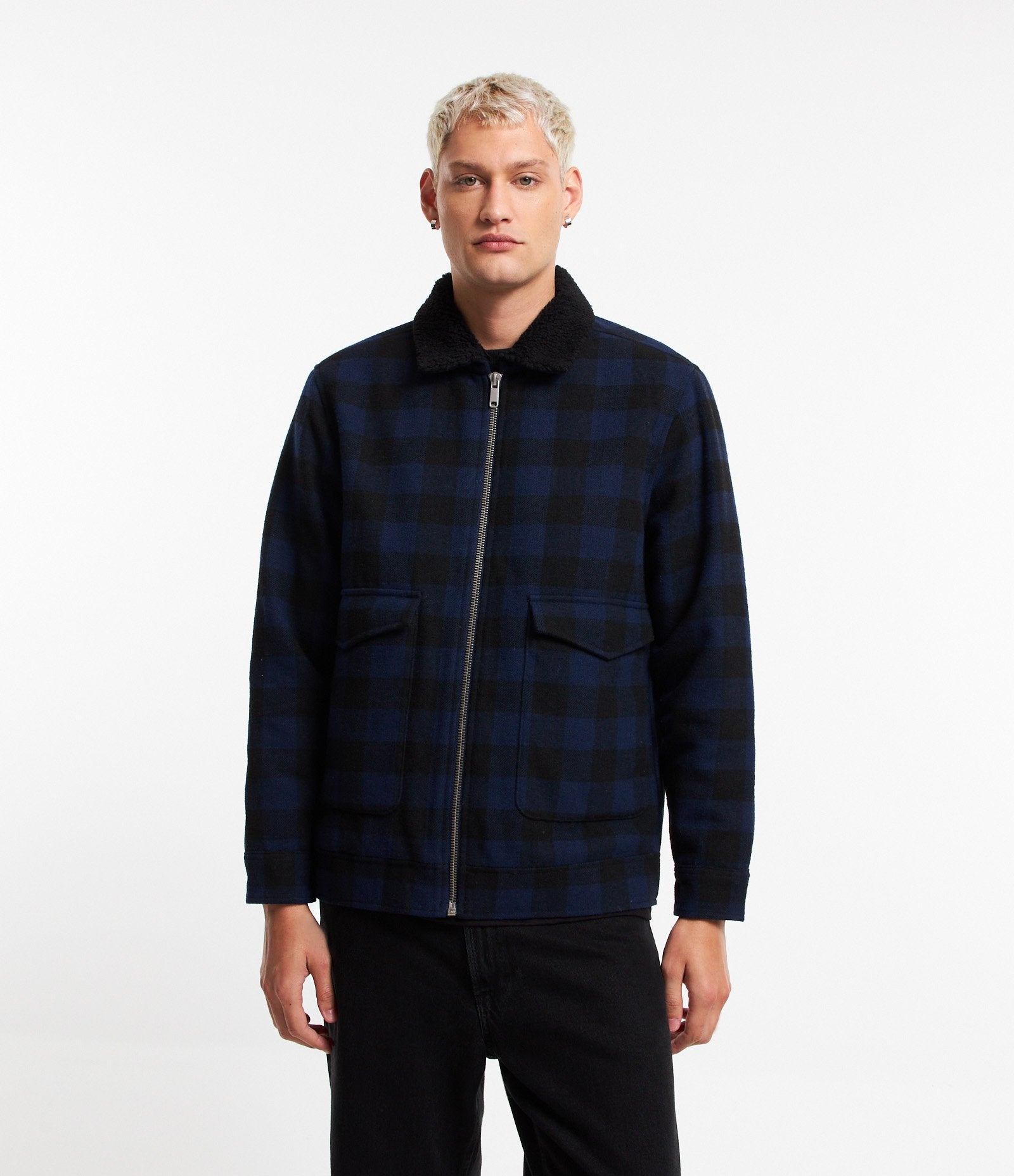 Jaqueta de moletom em poliviscose com estampa xadrez azul/preta
