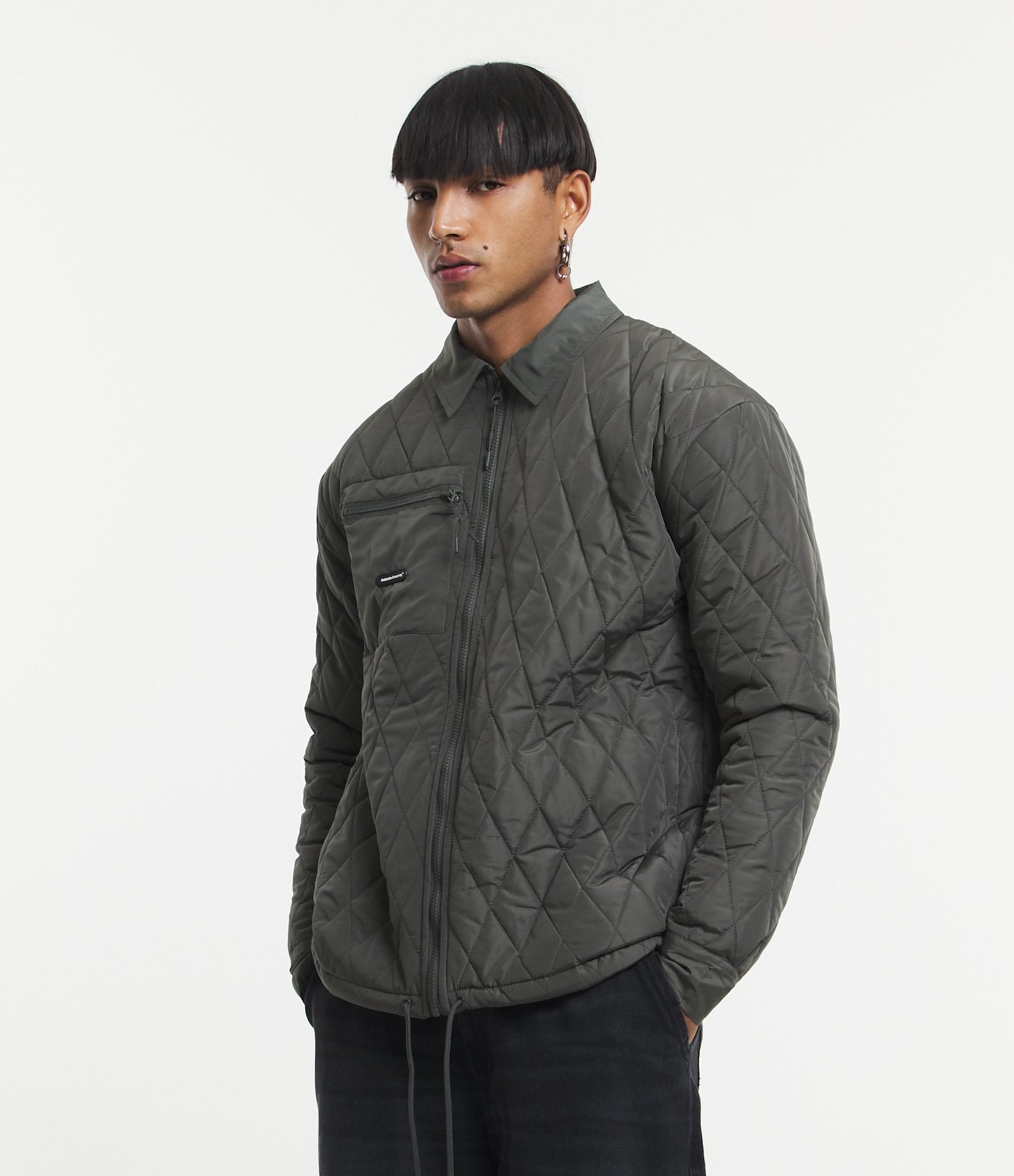Jaqueta oversized de poliamida texturizada com bolso verde-oliva