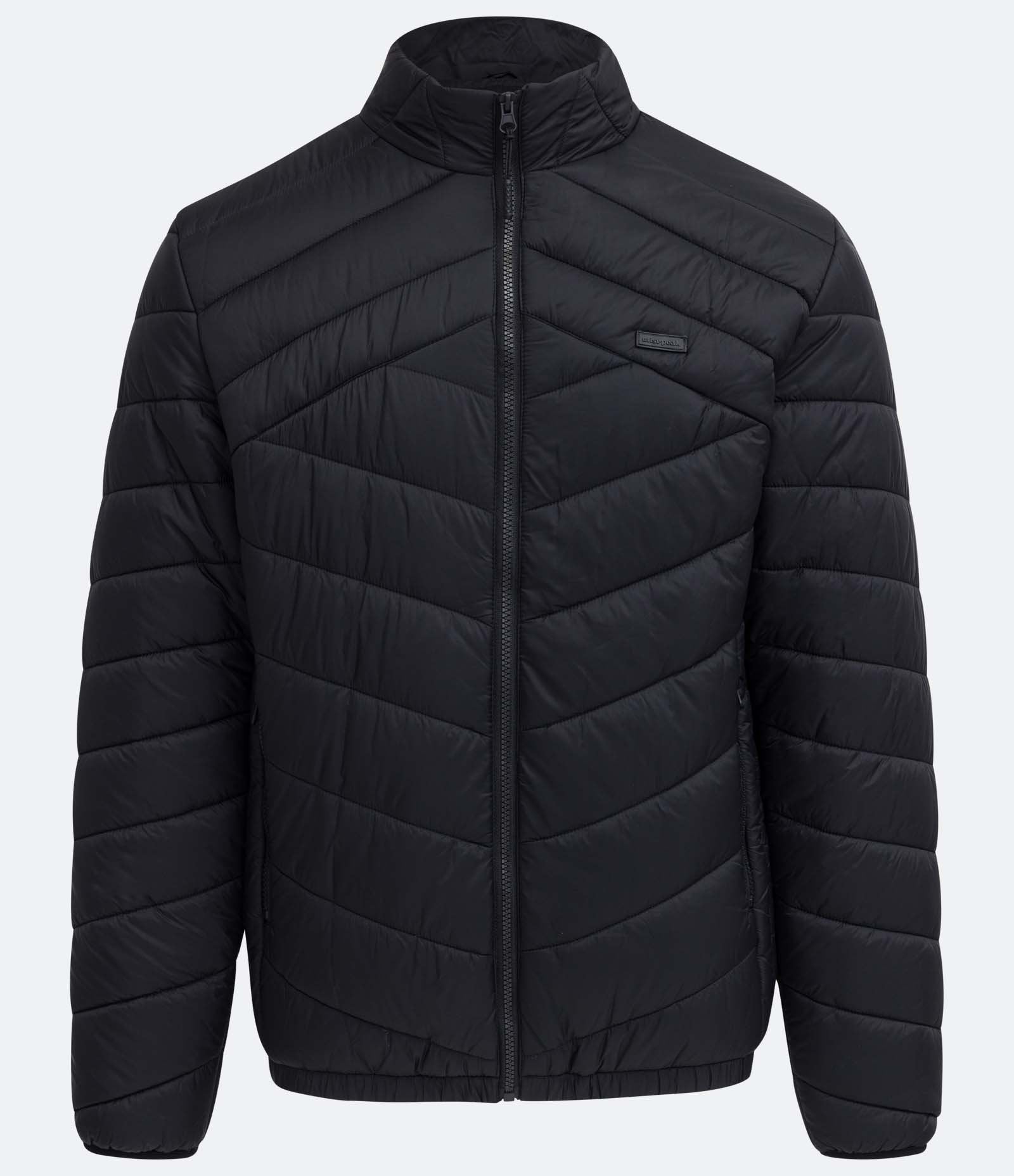 Jaqueta ultraleve de poliamida preta com design acolchoado e bolsos