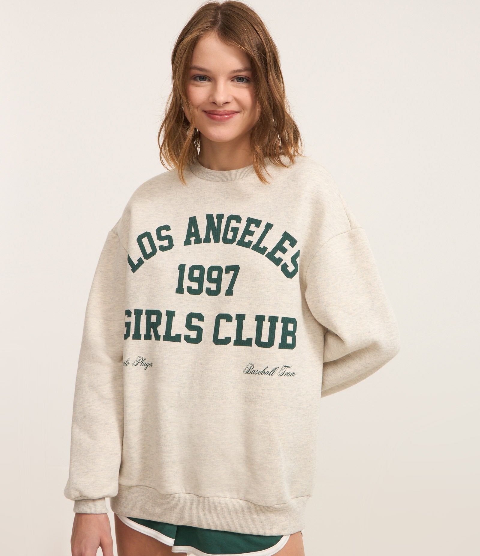 Moletom Slim com Forro de Lã e Estampa Los Angeles 1997 em Bege