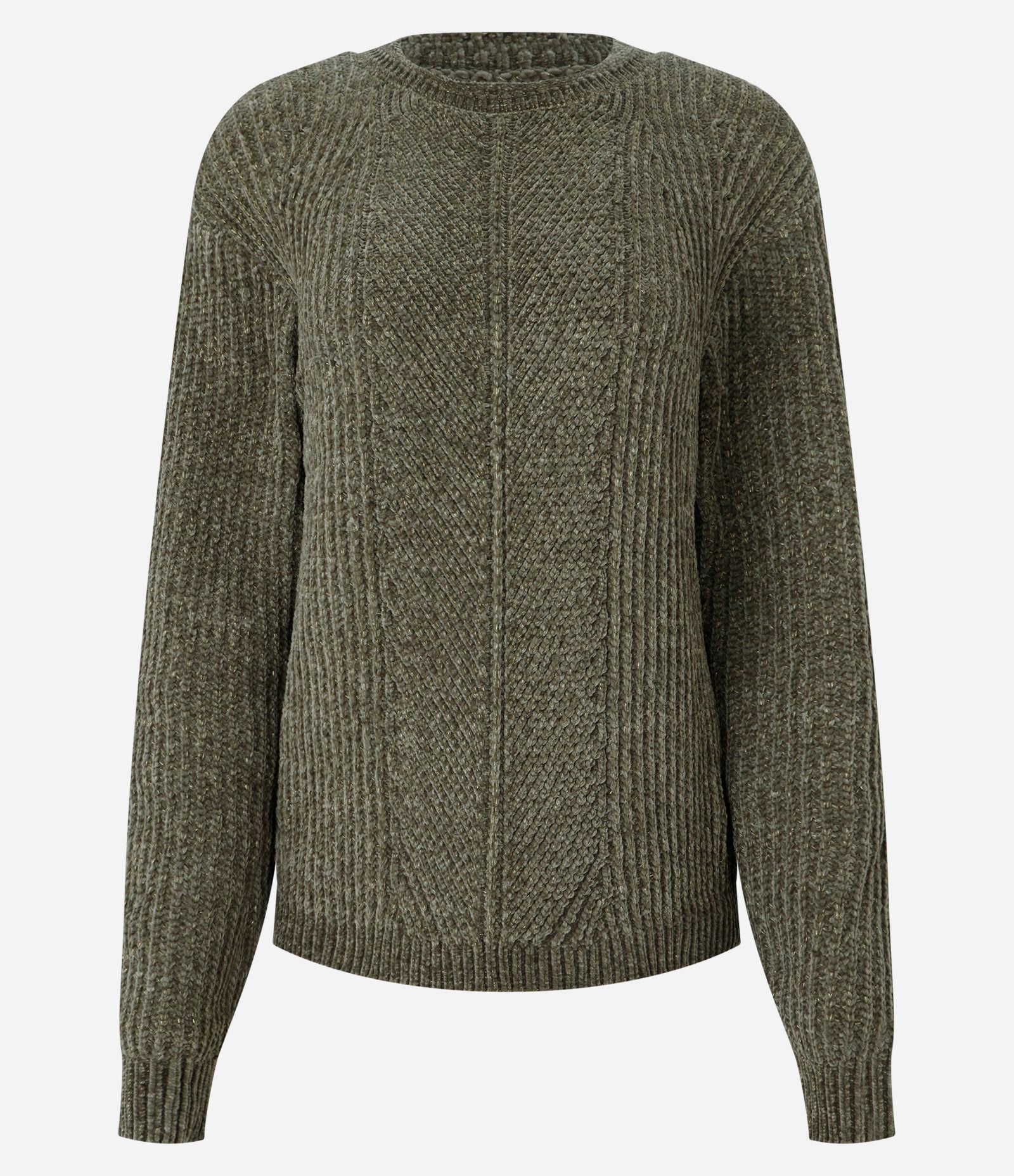 Suéter Verde Texturizado de Tricô com Punhos Canelados