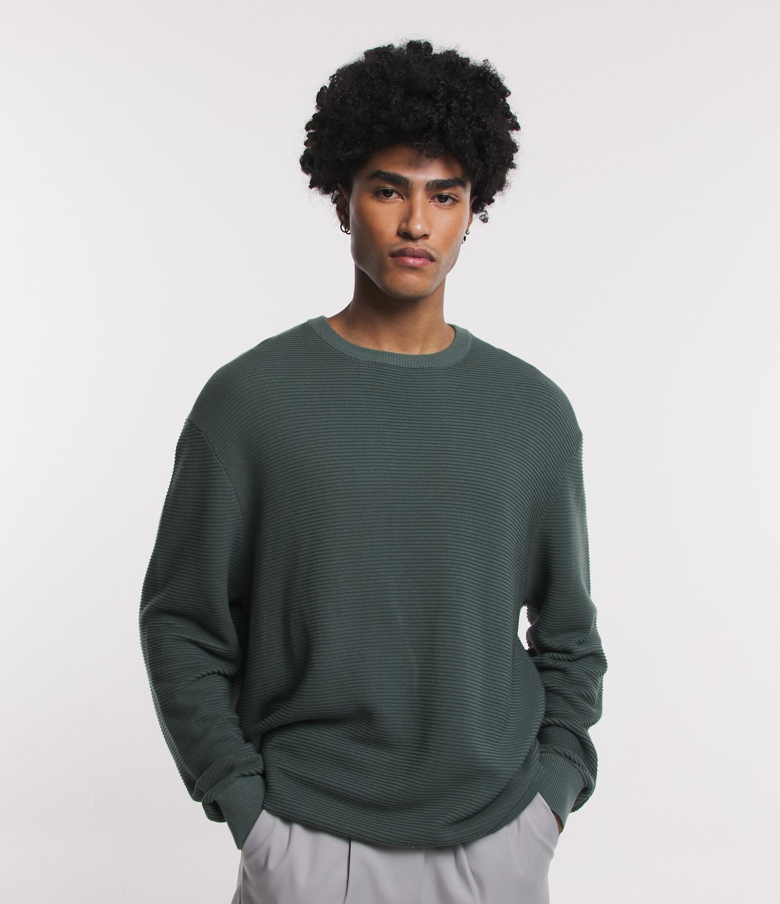 Suéter de malha texturizada com listras verdes