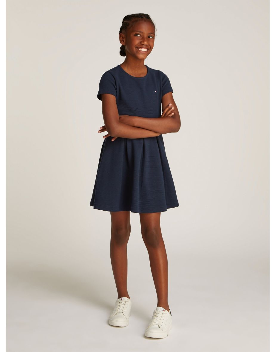 O vestido Ottoman Skater Dress in Navy para meninas da Tommy Hilfiger é a escolha ideal para passeios casuais e uso diário.