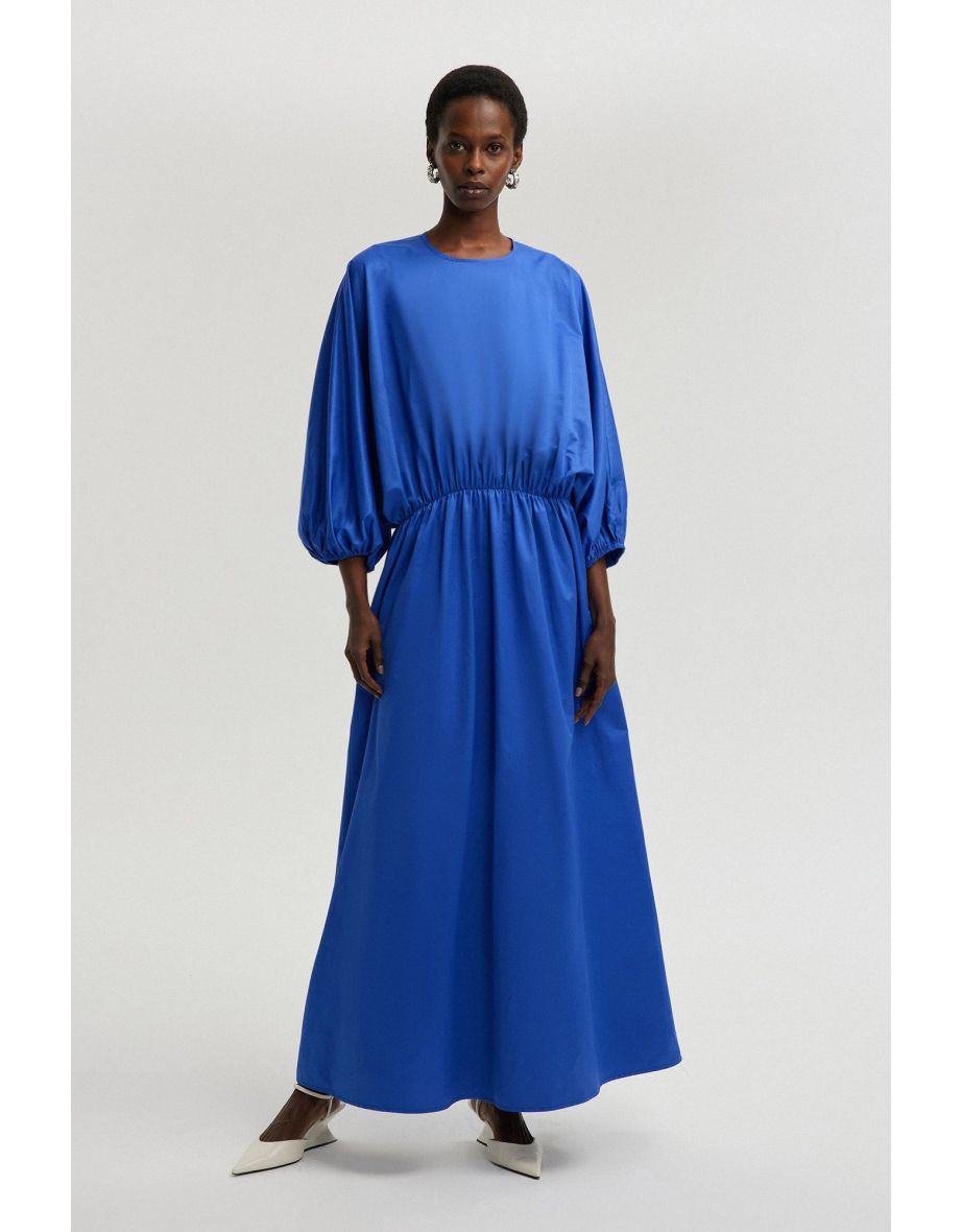 Vestido com cintura estampada e mangas em balão