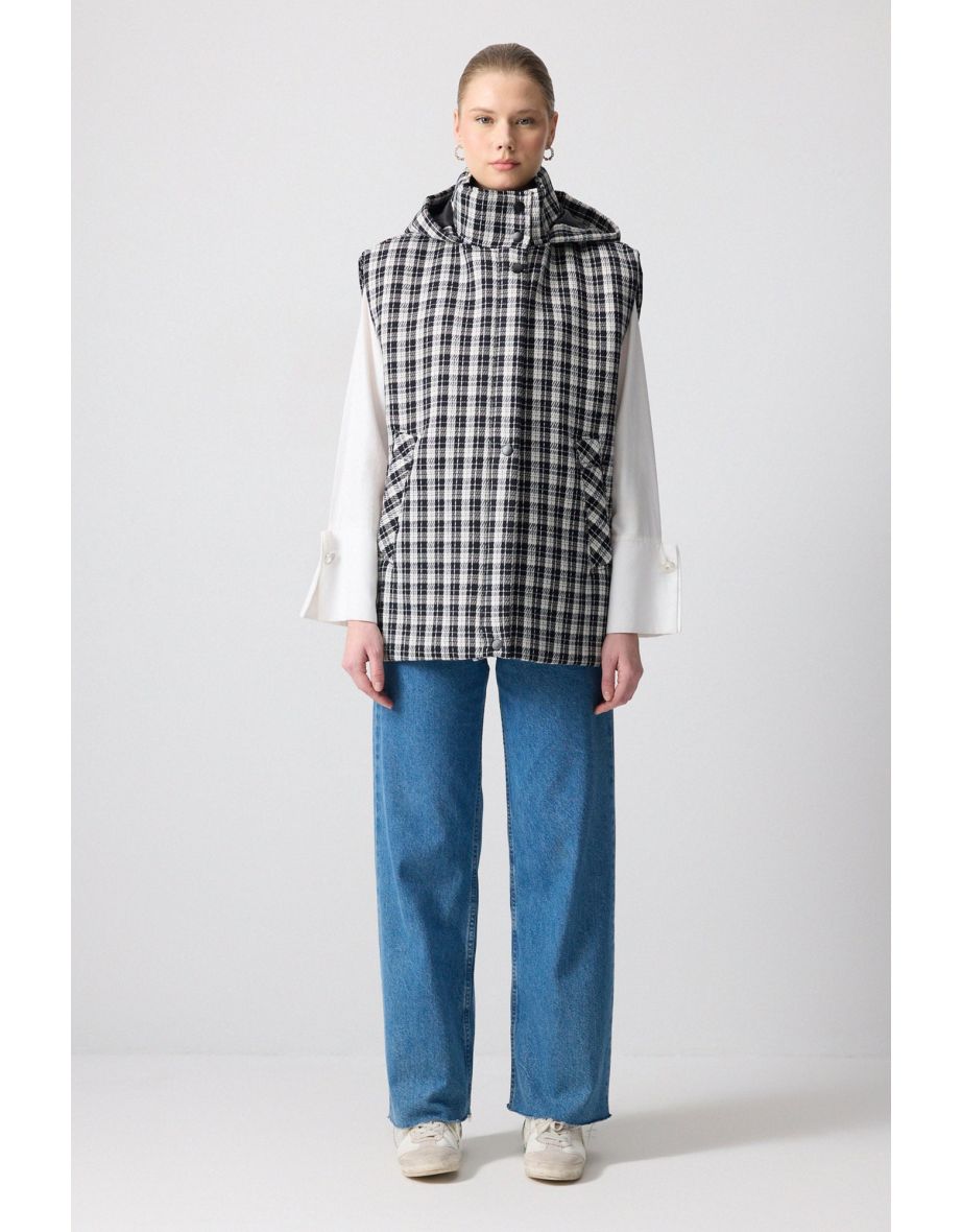 Colete inflável com capuz xadrez
