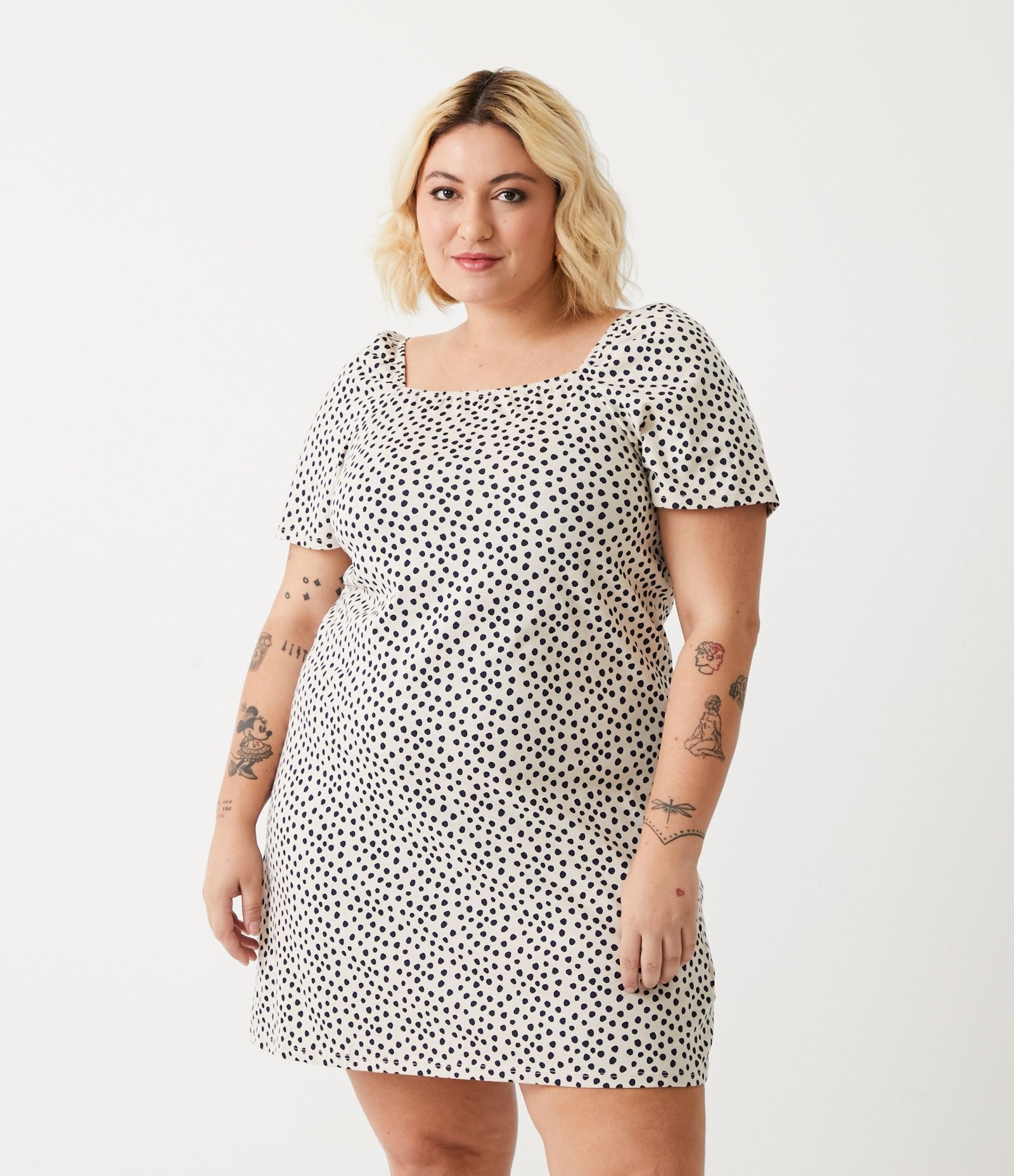 Vestido curto bege com estampa de bolinhas em tecido de malha - Curve e Plus Size