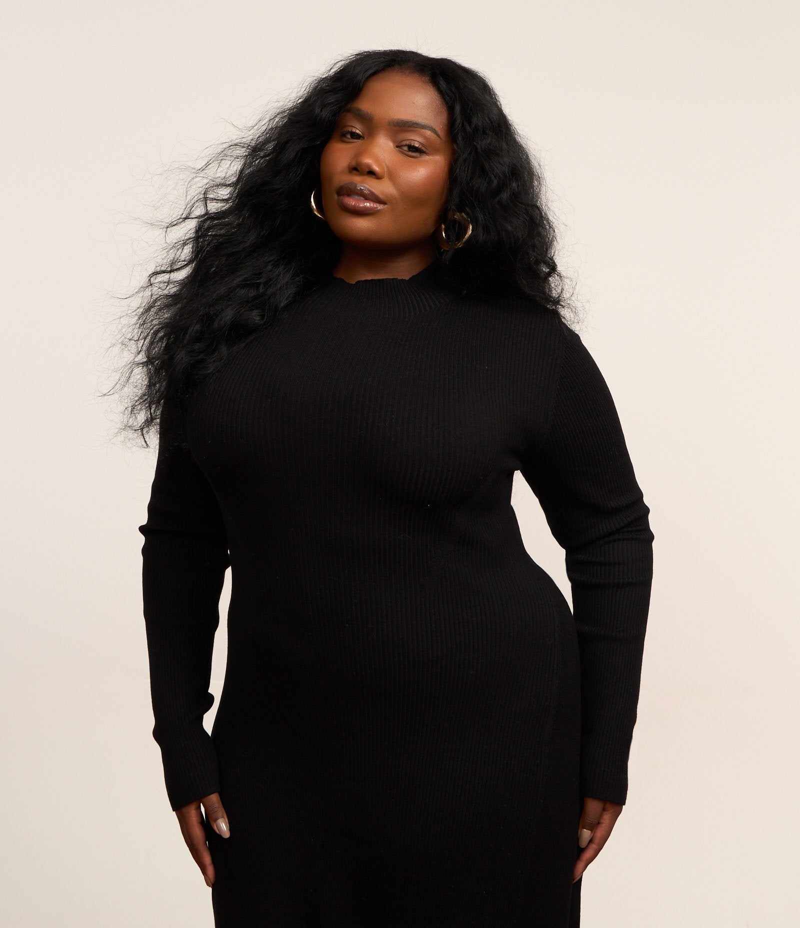 O vestido de tricô preto com decote alto e corte em A da Ashua Curve & Plus Size foi criado para celebrar as curvas com estilo e confiança. Ideal para qualquer ocasião, essa peça combina perfeitamente conforto e elegância em um design lisonjeiro.