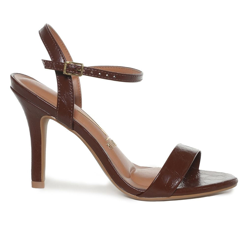 Sandália feminina de salto alto marrom Vizzano