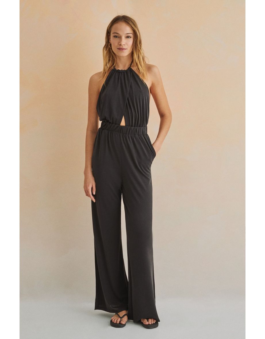O macacão longo com decote haltere preto da Women'Secret é a escolha ideal para você criar looks chiques sem esforço, perfeitos para o uso diário e para um estilo essencial.